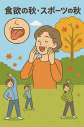 記録的な暑さの夏が過ぎ、ようやく「食欲の秋」、「スポーツの秋」を迎えました。おいしく食事を楽しみ、元気に体を動かすためには、「お口の健康」が欠かせません。むし歯や歯ぐきの病気がないことはもちろん大切ですが、それに加えて、舌やくちびるの動き、飲み込む力も健康の維持には重要です。 体を健やかに保つためにラジオ体操を行うように、「お口の体操」も健康づくりに役立ちます。ご自身に合った体操の方法は、かかりつけの歯科医院で相談し、指導を受けることができます。どうぞこの秋から、「お口の健康」にも気を配ってみてください。